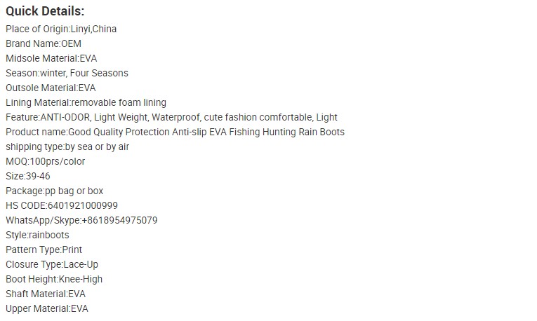 EVA rain boots DL-EVA024 Category:EVA rain boots Product Manual: Inquiry BASIC INFO PREVIOUS:EVA rain boots DL-EVA022 NEXT:EVA rain boots DL-EVA023 Related Products EVA rain boots DL-EVA018 EVA rain boots DL-EVA012 EVA rain boots DL-EVA005 EVA rain boots DL-EVA003 EVA rain boots DL-EVA017 EVA rain boots DL-EVA015